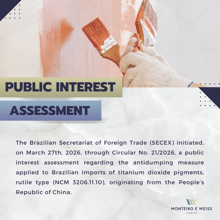 The Brazilian Secretariat of Foreign Trade (SECEX) has initiated a public interest assessment concerning the anti-dumping measure applied to Brazilian imports of titanium dioxide (TiO₂) pigments, rutile grade, originating from China.